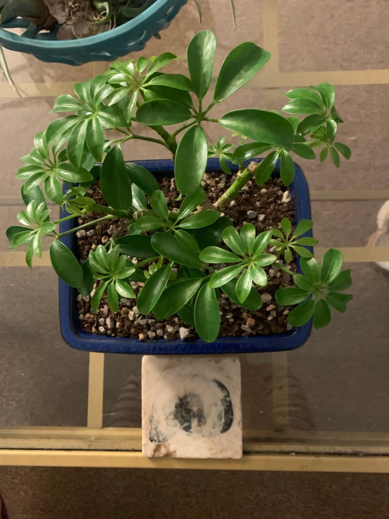 The Hawaiian Umbrella Bonsai was a gift from my partner that I’ve always loved to have nearby. I always find the leaves to be so unique and happy looking. If you are new to the bonsai world, I would definitely recommend a Hawaiian Umbrella as safe starting point.