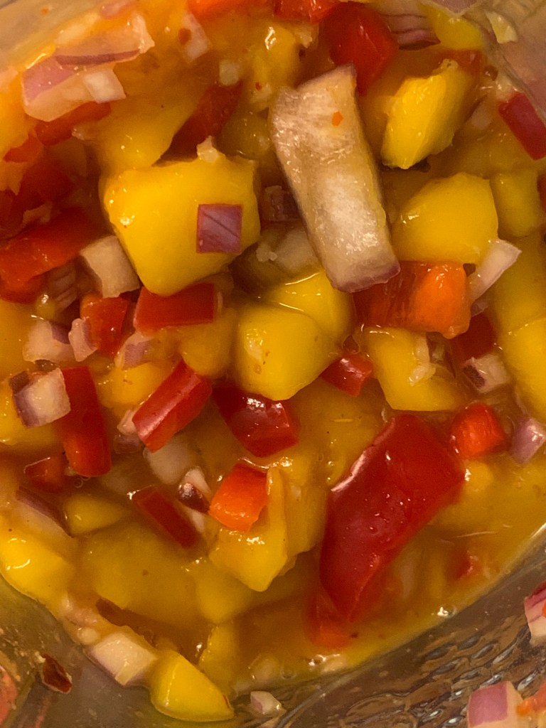 Now, a little-known fact about me, is I am obsessed with salsas, and I always love the opportunity to try new ones or different takes on old favorites. To commemorate this love, I am here to share my Mango Salsa recipe.